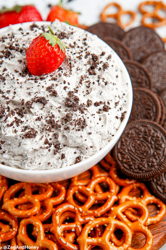 Chill in the refrigerator until ready to use, or serve immediately with strawberries, Oreos, graham crackers or pretzels. Enjoy!